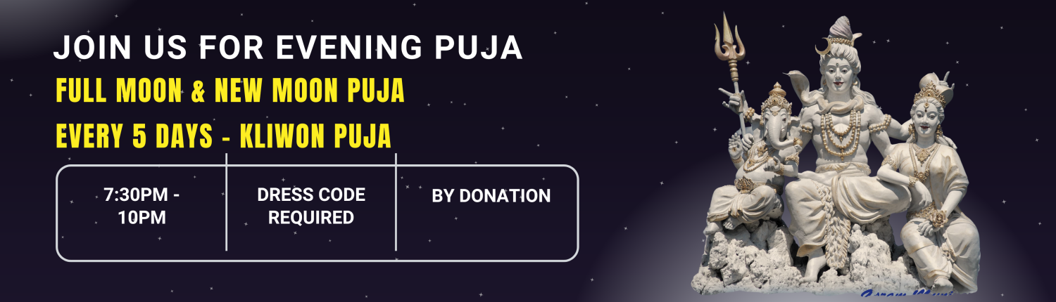Ashram Munivara hold an annual celebration of Jnana Buda Siwa every year in the month of July. Our Holy month of celebrations are filled with Puja, songs of worship, sacred dance and chanting the Divine names of God. Our main celebration dates are held on the 9th, 10th, 13th and 17th of July.